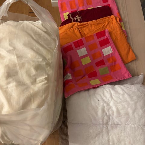 Gis bort: 1 dyne + dynetrekk 7 puter + 4 putetrekk 1 stol