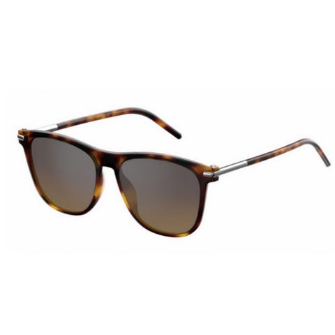 Innfatningen er i brun plast med metall-detaljer ved stengene.
