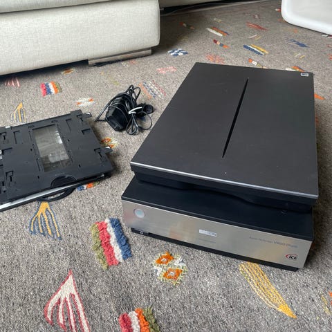 Plustek OpticFilm 8200i AI med programvare for å digitalisere bilder. Fungerer som den skal.