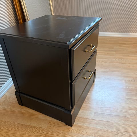 Fin stand. Kjøpte den selv via Finn men den passet ikke der vi skulle ha den. Jeg tror dette er en kommode fra Ikea, tungt og solid treverk. Den bærer litt preg av bruk men har ingen skader eller merker. En fin kommode med mye lagringsplass! Kan eventuelt males men også fin som den er. Må hentes!