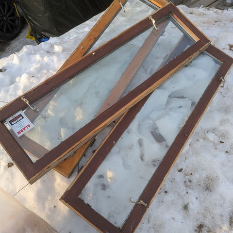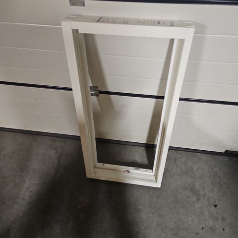 Vindu i hvit ramme innvendig, mosegrønn på utsiden. Helt ok stand.