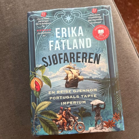 Erika Fatland: Sjøfareren. En reise gjennom Portugals tapte imperium, 2024. Erika Fatland er tilbake! Med seg i skipssekken har hun hele det portugisiske imperiet, fra 1400-tallets oppdagere, via koloniveldets fall i 1970-årene og til i dag: En reiseskildring med uforglemmelige menneskemøter, skjebner og historier. Boken er nesten som ny.