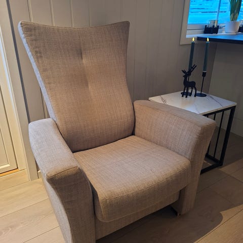 Selger en meget pen og velholdt lenestol fra kvalitetsmerket Violante, kjøpt på Skeidar. Stolen har lene-funksjon (push-back). Behagelig og slitesterk lenestol i norsk design. Stolen er nylig blitt renset.