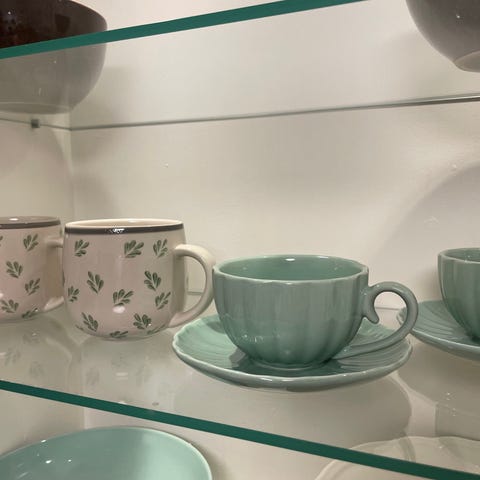 2 tekopper i dus rosa farge m gullfarga hank, kr 75 for begge