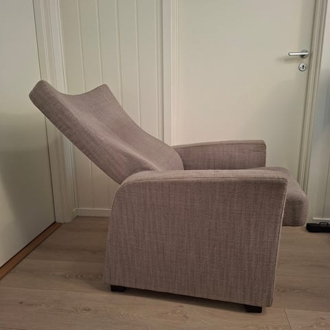 Selger en meget pen og velholdt lenestol fra kvalitetsmerket Violante, kjøpt på Skeidar. Stolen har lene-funksjon (push-back). Behagelig og slitesterk lenestol i norsk design. Stolen er nylig blitt renset.