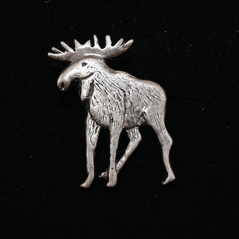 Pent jakkemerke / pins i ekte sølv med motiv av en elg.