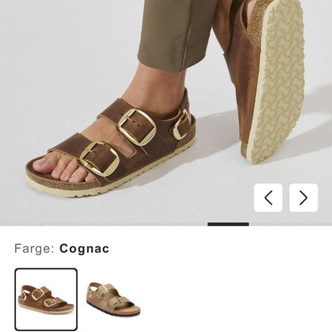 Birkenstock sandaler i størrelse 38. Modellen har to justerbare remmer med metallspenner. Overdelen ser ut til å være i semsket materiale i en nøytral grå/beige farge. Innvendig er sandalene fôret med mykt, lyst fôr for ekstra komfort. Sålen er formet med støtte til fotbue og hæl, og yttersålen er i mønstret gummi for bedre grep. Passer som komfortable innesandaler eller lette utesandaler i kjøligere vær.