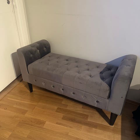 Selges som den er. Et par småflekker som ikke er forsøkt fjernet. Beige-ish farge.