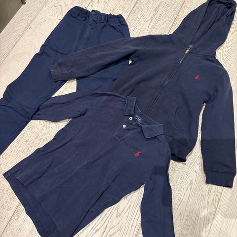 Polo Ralph Lauren hettegenser, vanlig genser, pique og Kenzo genser for barn i størrelse 122-128. Genseren er unisex og har blå farge. Foran er det et stort Polo Bear-trykk. Og Kenzo genser i marineblå med rød skrift. Mykt og behagelig materiale egnet til hverdagsbruk.