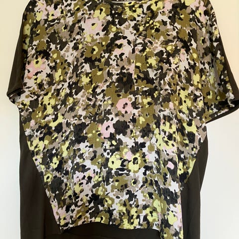 Gerry Weber T-skjorte for dame i størrelse M. T-skjorten er svart og laget i viskose. Modellen har rund hals og korte ermer. Stoffet er mykt og lett, egnet til hverdagsbruk eller under jakke og cardigan. Passer til bukser, skjørt eller jeans. Prisen er for begge, 130kr.