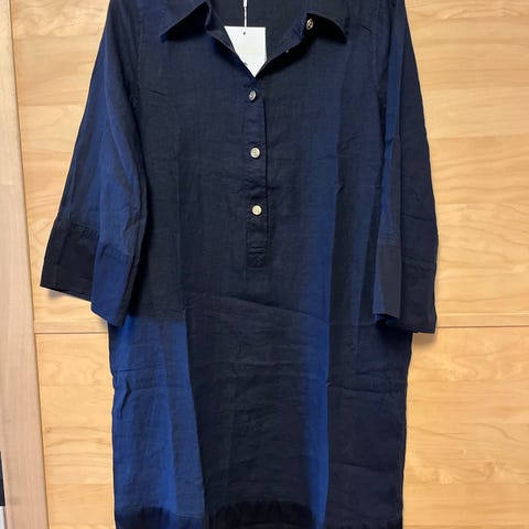 Busnel hverdagskjole for dame i størrelse 40. Kjolen er blå og laget i viskose. Modellen har lange ermer og rett, enkel fasong som rekker ned mot leggene. Diskré Busnel-logo i metall på ermet. Egnet som hverdagskjole og kan brukes både alene og sammen med strømpebukse eller leggings.
