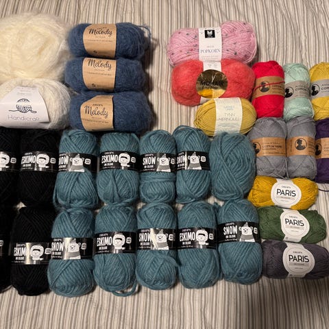 Selger rester av diverse garn. Kan sendes med Postnord for kr 69