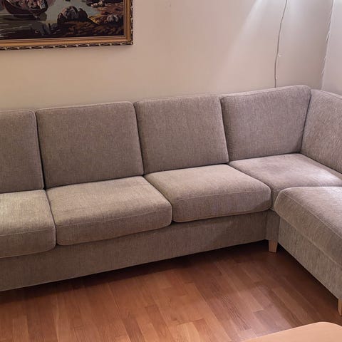 3 seter sofa med sjeselong som er brukt i 3 år. Har noen flekker men ellers i fin stand