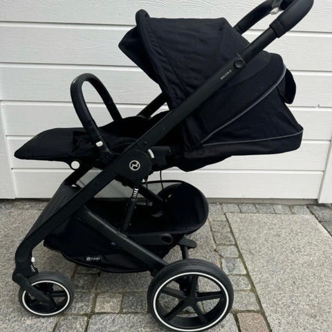 Cybex talos S barnevogn med vendbar sittedel i grå tekstil og sort understell. Vognen har justerbart ryggstøtte som kan legges ned til hvileposisjon, stor kalesje og varekurv under setet. Fire hjul med fast ramme gir stabilitet, og håndtaket er utformet for god trillekomfort. Passer til ett barn og er egnet til hverdagsbruk på fortau og jevnt underlag.