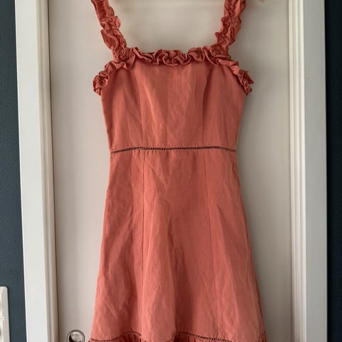 GAP sommerkjole for dame i størrelse L. Kjolen er rød med småmønstret trykk og er laget i viskose.