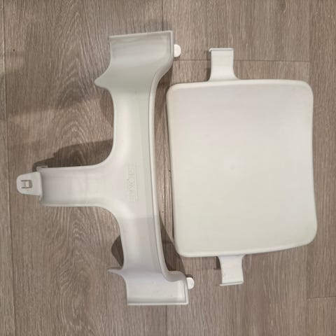 Selger to Stokke-deler (rygg + bøyle/babyset-del), da de dessverre ikke passer til vår gamle modell av Stokke Tripp Trapp.