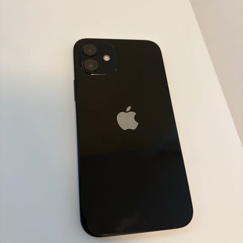Apple iPhone 12 Pro Max mobiltelefon med 256 GB lagringskapasitet. Modellen har stor skjerm, trippelt kameraoppsett på baksiden og frontkamera i skjermens øvre del. Enheten har fysisk volumknapp og sideknapp. Skjermen på denne telefonen har synlige sprekker, mens baksiden fremstår hel.