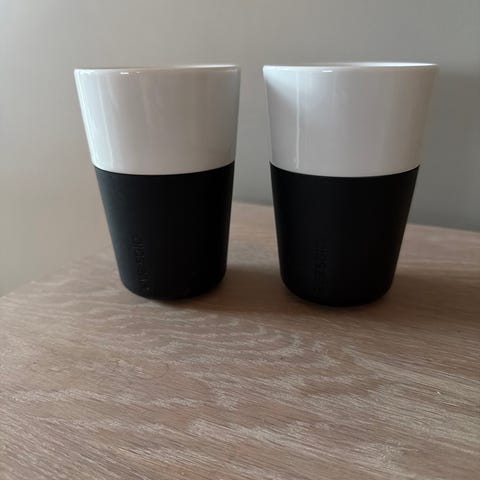 Eva Solo LUNGO kopper i keramikk i flere farger. Koppene har tofarget design med hvit øvre del og farget nedre del. Egnet til servering av varme og kalde drikker på kjøkken eller spisebord. Kan brukes enkeltvis eller som sett, avhengig av hvor mange som selges sammen.