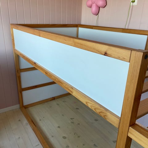 IKEA MINNEN uttrekkbar juniorseng med ribbebunn, lys rosa. 80x200 cm.