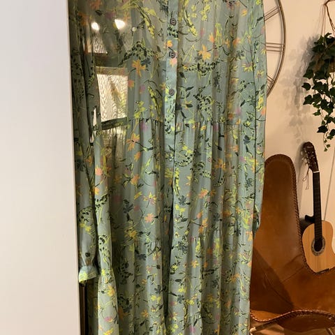 Vila hverdagskjole i grønn cordfløyel i størrelse 44. Kjolen har krage, lange ermer og knepping foran. Materialet er cordfløyel som gir en myk og strukturert overflate. Passer som hverdagskjole til ulike anledninger.