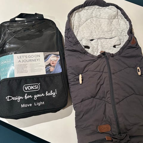 Selger en pent brukt VOKSI move ligth bilstol/ vognpose til baby. Farge sand. Unik til både bilstol og vogn. Perfekt til vår, sommer og høst.