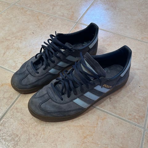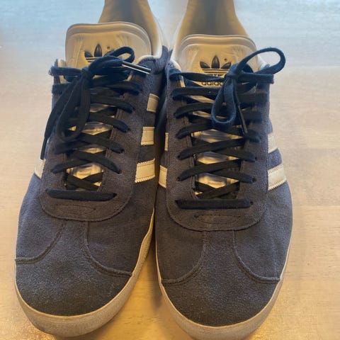 Adidas joggesko str. 42 blå med mørkeblå striper