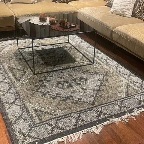 Rugvista teppe flerfarget med mønster og frynser 160cm x 200cm
