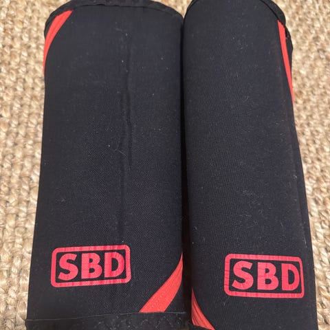 SBD knevarmere i svart med røde detaljer. I størrelse XS. Har ikke blitt brukt, fordi de er for små, så de er så og si nye