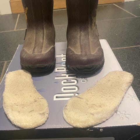 Godt brukte Dock boots. Innersåle mangler, men har ikke hatt noe å si for bruken her. Ullsålene er aldri brukt. Rosa