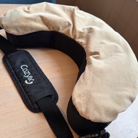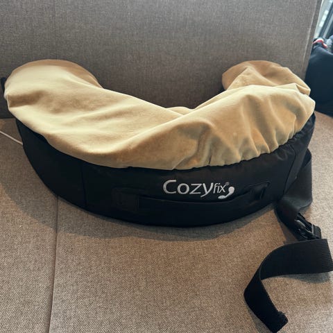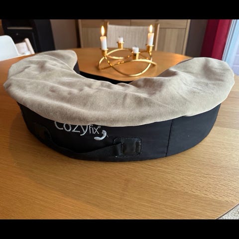 Selger en cozyfix ammepute, brukt i noen måneder med et barn. Puten kan spennes rundt magen og gjør det lettere å finne gode posisjoner under amming.