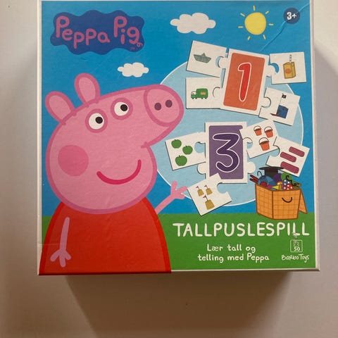 Peppa Pig-brettspillene «Skattejagt» og «Hvirvelvind», flere puslespill med Disney-motiv (blant annet Bambi og Frost- motiv), samt eventyrmotiv med prinsesse og vogn.