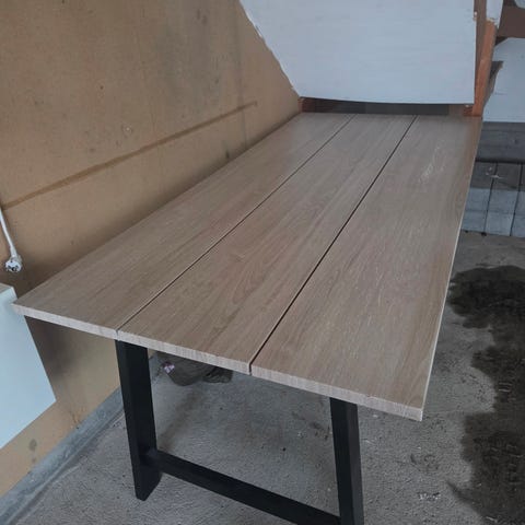 Spisebord i eikefiner gis bort. Bruksmerker på bordplaten. Tror det er fra Jysk.