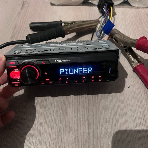 Pioneer DEH-X6800DAB bilstereo med innebygd DAB- og FM-radio samt CD-spiller. Enheten har enkel DIN-størrelse og frontpanel med display og betjeningsknapper. Passer som hovedenhet i bilens dashbord for avspilling av radio og CD, samt tilkobling av eksterne lydkilder via bilens eksisterende ledningsnett og kontakter.