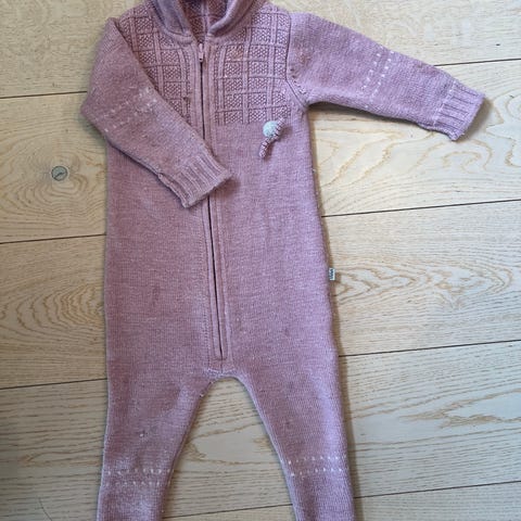 Lillelam ull sparkedress med tilhørende lue i rosa, størrelse 68. Luen er str 40-42. Egnet som ytter- eller mellomlag for baby i størrelse 68.