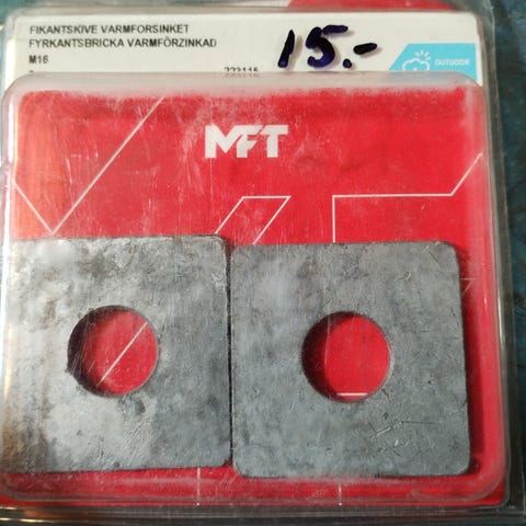 Firkantskiver 50x50x3mm 8mm hull Kr 5,- Runde skiver 60mm Diameter 12mm hull 3mm tykke kr6,-