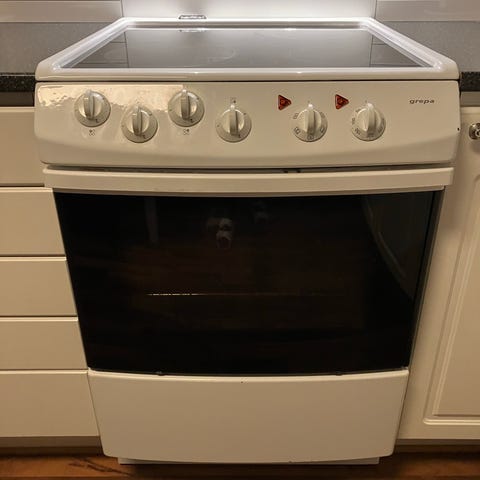 Grepa keramisk komfyr i hvit utførelse. Komfyren har keramisk topp med flere kokesoner og stekeovn med glassdør. Fronten har dreiebrytere for betjening av både platetopp og stekeovn. Egnet som frittstående komfyr på kjøkken, for vanlig matlaging og baking.