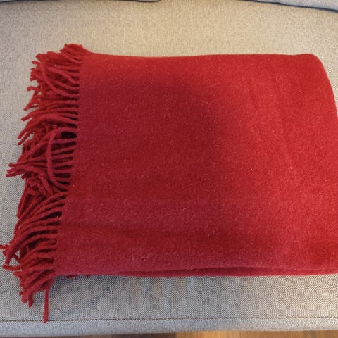 Ullpledd i rød/vinrød farge. Str 130×170.