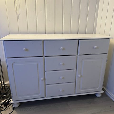 Denne har stått i garasjen og blitt brukt til å oppbevare malingspann og diverse. Alt er i orden. Kan fikses opp med et malingstrøk.