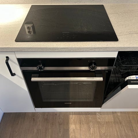 Hettich kjøkken selges. Kjøkkeninnredning med overskap, underskap og høyskap i grå utførelse. Innredningen består av flere underskap med skuffer og dører, overskap med både tette fronter og vitrineskap med glassdører, samt høyskap. Det er integrert ventilatorhette over platetopp. Benkeplaten er mørk og har utsparing for platetopp og vask. Kjøkkenet har hjørneløsning og gir god benk- og oppbevaringsplass. Egnede bruksområder er montering i boligkjøkken, hybel eller fritidsbolig der det er behov for en komplett kjøkkeninnredning med skap, benkeplate og ventilatorhette.
