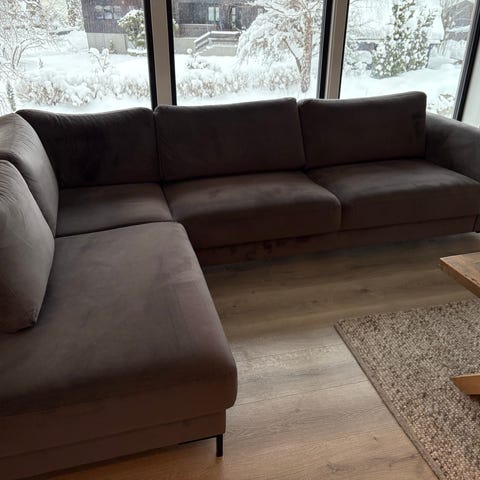 Pent brukt 2,5 seter med sjeselong. Sofaen er fra Fagmøbler i Drøbak.