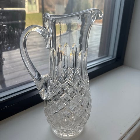 Pen liten mugge i klart presset glass med fasettert mønster og helletut. Perfekt som fløtemugge, sausenebb, til melk, vaniljesaus eller som dekorativ detalj på bordet. Klassisk og tidløst design.