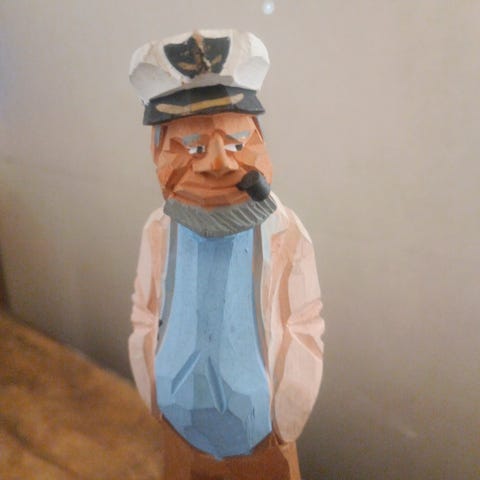 Treskjært vinpropp med figurhode, merket "Langesund" på siden. Figuren forestiller en mann med hatt og jakke, og har bevegelig munn som åpnes og lukkes med en enkel mekanisme. Proppen har korkdel nederst for plassering i flaskehals. Egner seg som dekorativ kork til vin- eller brennevinsflasker, og som samleobjekt for treskurd eller suvenirer fra Langesund. Ønsker vipps