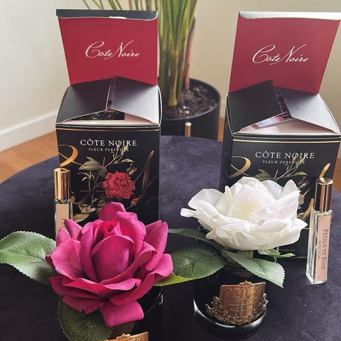 Blomser i glassvase med perfyme