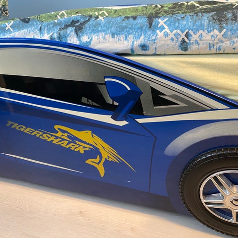 Det en morsom bil seng som min sønn har storkost seg i, men er nå blitt for gammel til den - jeg satte sengen inntil veggen og dermed bare 2 hjul skrud på - (mener å ha 2 hjul til i boden) det er lys som kan slås av og på med nøkkel (fint hvis barnet er mørke redd) - sengen er formet slik at det er vanskelig å falle ut av sengen - spoiler bak kan brukes som hylle - det følger med sengeteppe i race farger som bilen og 2 puter i samme farge som bilen (som er ekstra tilbehør til sengen)