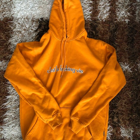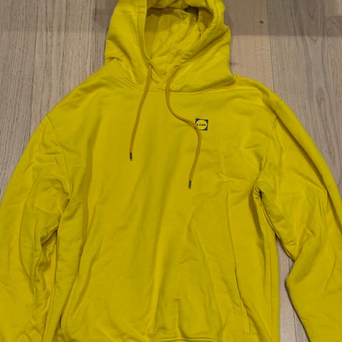 En Alexander Wang for Adidas hettegenser. I tynt stoff og neongul farge og Adidas-monogrammer over det hele. Størrelse LARGE.