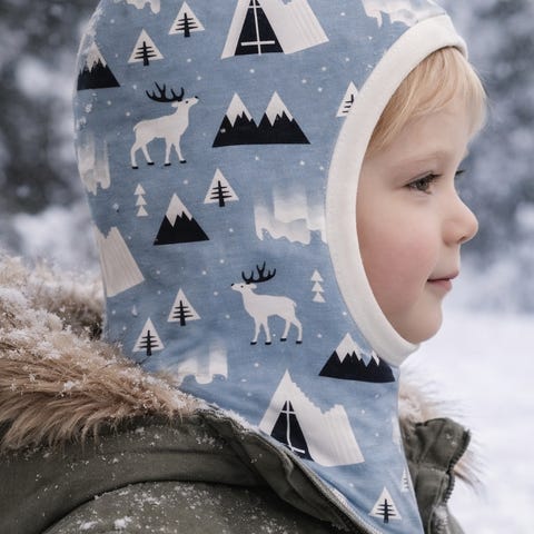 God passform som sitter fint rundt ansiktet og holder barn varmt på kjølige dager.