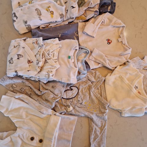 Lindex babyklær sett i størrelse 50 (1-3 ) for unisex. Pakken består av flere plagg i ulike farger, blant annet bodyer og bukser i lyse og dusere toner. Klærne passer nyfødt/baby og kan brukes til hverdags. Flerfargede plagg gjør det enkelt å kombinere delene på ulike måter. Materialet er typisk mykt og behagelig for baby (vanligvis bomullsblandinger fra Lindex).