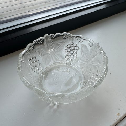 Glasskål med blomstermønster – klart glass