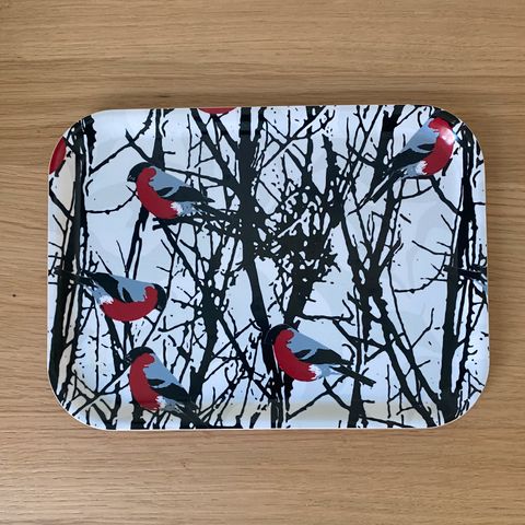 Lite serveringsbrett, design Charlotte Nicolin, Sverige. Bredde 20 cm og lengde 27 cm. Framside uten slitasje eller skade. Bakside lett slitasje på ytterkant kortsiden. Sender. Kjøper betaler porto