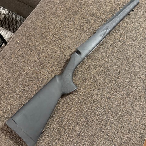 Ubrukt riflestokk i linja selges.
